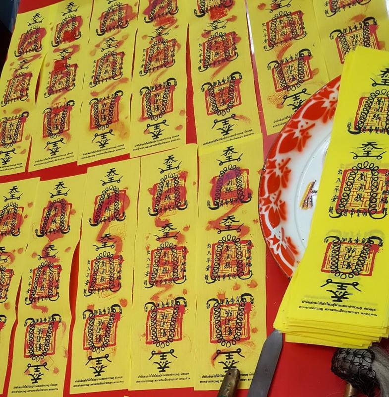 “ครั้นถ้ามองกันว่า ผ้ายันต์ฯ แบบผ้าไม่มี มีแต่ผ้ายันต์ฯ แบบกระดาษ หรือครั้นถ้ามองว่ามีทั้ง 2 แบบ โดยส่วนตัว และทันเคยเห็นผ้ายันต์ฯ ทั้งแบบผ้า และแบบกระดาษ ในยุคของอาเหล่าแปะ หรือ “จับเกี๊ยมแปะ” ซึ่งท่านมีองค์ประทับของอากงท่านเทพเจ้ากวนอู และเคยมีการประทับทรงองค์อากงท่านเทพเจ้ากวนอู ภายในศาลเจ้าพ่อกวนอู บริเวณชุมชนชาวตลาดสมเด็จเจ้าพระยา คลองสาน ในช่วงหลายสิบปีก่อน”