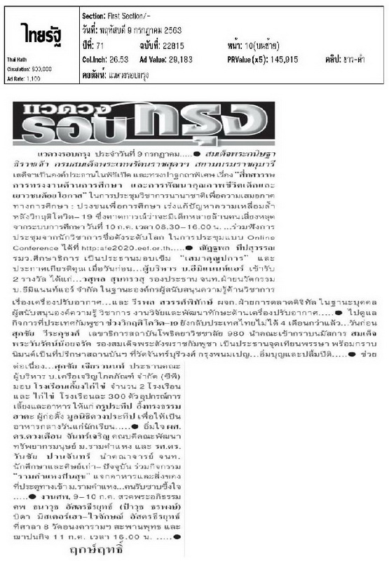กราบขอบพระคุณท่านฤกษ์ฤทธิ์ แวดวงรอบกรุง และทางหนังสือพิมพ์ไทยรัฐ