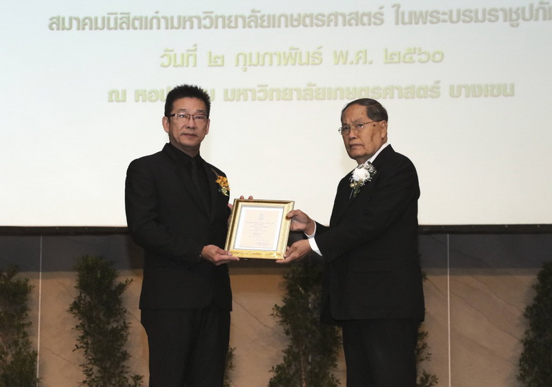 นายชยานนท์ กฤตยาเชวง รองกรรมการผู้จัดการใหญ่บริหาร สายงานปฏิบัติการกลุ่มธุรกิจเกษตรอุตสาหกรรม เครือเบทาโกร (ซ้าย) รับมอบโล่เชิดชูเกียรติศิษย์เก่าดีเด่น ประเภทนักบริหารภาคเอกชน ประจำปี พ.ศ. 2560 สมาคมนิสิตเก่ามหาวิทยาลัยเกษตรศาสตร์ ในพระบรมราชูปถัมภ์ จากนายอำพล เสนาณรงค์ นายกสภามหาวิทยาลัยเกษตรศาสตร์ (ขวา) ณ หอประชุม มหาวิทยาลัยเกษตรศาสตร์ บางเขน เมื่อเร็วๆ นี้