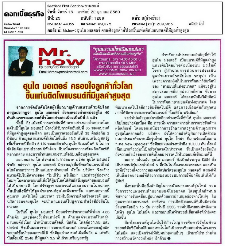 ฮุนได มอเตอร์ ครองใจลูกค้าทั่วโลก คว้าที่ 35 แบรนด์ที่มีมูลค่าสูงสุดติดต่อกัน 2 ปีซ้อน